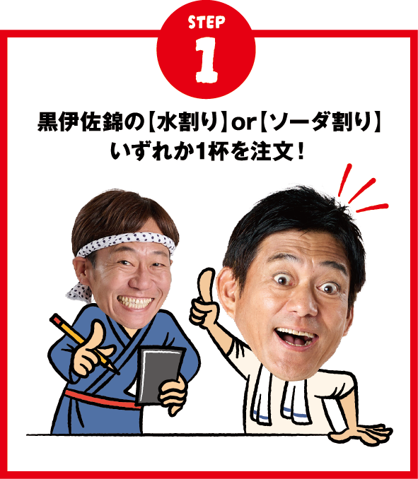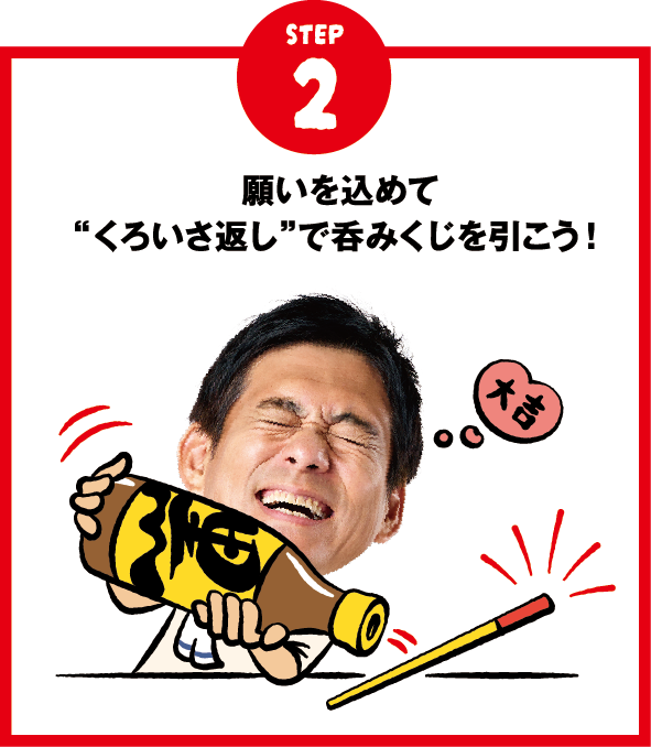 キャンペーン開催店舗にて「黒伊佐錦グラス(水割り、ソーダ割りに限る)」をご注文いただいたお客様へ、1杯につき1回「くろいさ返し呑みくじ」にチャレンジしていただきます。